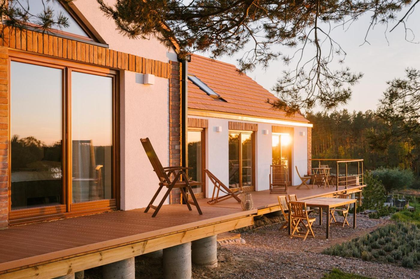 Willa. This villas special features are the sauna and the fireplace. This spacious villa consists of 1 living room, 4 separate bedrooms and 3 bathrooms with a shower and free toiletries. Guests will find a stovetop, a refrigerator, a dishwasher and kitchenware in the well-equipped kitchen. The villa also offers a barbecue. The villa provides a washing machine, a private entrance, soundproof walls as well as a terrace with lake views. The unit offers 8 beds. Willa - 8 osobowy. Powierzchnia pokoju ok.: 198 mkw.